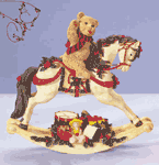 Wishing everyone a Merry Christmas in a big way is this big teddy on brightly festooned steed.A fun musicial fashioned in carefully handpainted alabastrite 14" x 4 1/2" x 13 " high